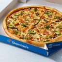 Marinert kylling, grønn paprika, sopp, jalapeños, chiliflak, mozzarella & pizzasaus.