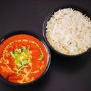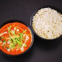 Tomatbasert curry saus med løk, hvitløk og ingefær. Serveres med ris.