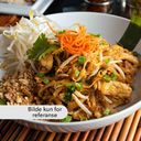Thailandske stekt nudler med svinekjøtt, oksekjøtt og kylling.