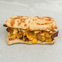 Grillet schiachatta med kylling shawarma, snackyard dressing, cheddar, rødløk, jalapeño og mais dressing.