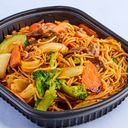 Stekte nudler med valgfritt kjøtt og grønnsaker.