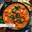 Kongereker stekt i tandoori. Tilberedt i wok med currysaus, tomater, paprika, ingefær og koriander.