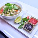 Vietnamesisk risnuddelsuppe i oksekraft. Serveres med oksekjøtt, bønnespirer, løk og friske urter.