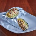 Rullekebab med mais, salat og dressing. Velg størrelse og type kjøtt.
