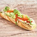 Baguette med ost, salat, agurk, tomat, paprika og majones. Velg størrelse.