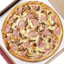 Pizza med skinke, marinert aromasopp og oregano. Velg størrelse, glutenfri pizza kommer kun i liten størrelse.