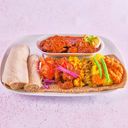 Kombinasjonsrett av kjøtt og vegetar, med godt krydret kylling, sautert biff og langtidskokt lam i gurkemeie saus. Rød og grønn linser, kikerter, og grønnsaker. Serveres med enjera(lefse)