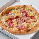 Tomatsaus, mozzarella, løk, Nduja, spicey salami, kokt skinke, guanciale, olive og chili oil