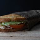 170g Kylling av lårfilet med parmesan ost og urtemajones på smørstekt surdeigsbrød. Kommer med biff tomat, isberg salat og syltet rødløk.
