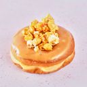 Homemade salty sweet caramel glaze topped with caramelized popcorn.