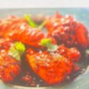 Kylling i krydder, hvitløk, sitron, kremfløte. Serveres med ris, nan og raita.