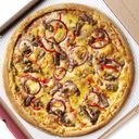 Pizza med avokado, rødløk, marinert aromasopp, oliven, cherrytomat og grønnkålmiks. Osten er byttet ut med en smaksrik vegansk aioli. Toppet med nykvernet pepper og limezest. Velg størrelse, glutenfri pizza kommer kun i liten størrelse.