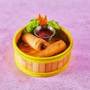 To sprøstekte vietnamesiske vårruller med kylling, crabstick og grønnsaker. Serveres med søt chilisaus.
