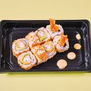 8 stk. uramaki med fritert scampi, mango, agurk, kremost, laks, kveite og tunfisk. Toppes med scampi og sitronmajones.