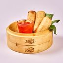 3 stk vårruller, sprø kylling med cashewnøtter og biff med østerssaus.
