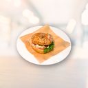 Toast m/ Kylling og Bacon. Serveres med salat, salt potetgull og Aioli.