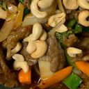 Ferske grønnsaker stekes med kongbao saus og cashewnøtter.