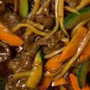 Grønnsaker i sterk Szechuan saus. Velg mellom biff eller kylling.