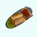 2 stk. ferske vårruller med kylling, scampi, nudler og grønnsaker rullet i rispapir.