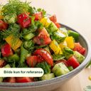 Salat med pepper, tomat, agurk, dill, persille, sitron og olivenolje.