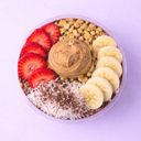 Acai toppet med: Jordbær, blåbær,kokosmasse granola og peanøttsmør.