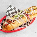 Baguette med enten kebabkjøtt, dönerkjøtt, kylling eller biff.