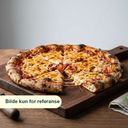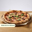 Pizza med skinke, salami, paprika, sjampinjong, ost og tomatsaus.
