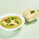 Grønn karri med kokosmelk, bambusskudd og grønnsaker. Velg mellom kylling, svin eller reker.