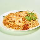 Stekte risnudler med egg, peanøtter og grønnsaker. Velg mellom kylling, svin eller reker.