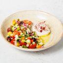Topped with tricolor paprika and Greek pita.