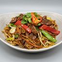 Chow mein nudler med ferske grønnsaker. Velg mellom kylling, biff, scampi eller tofu.
