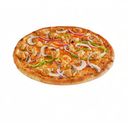Pizza med tomatsaus, mozzarellaost, kylling, løk, paprika og champignon. Velg størrelse.