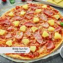 Pizza med pizzasaus, ost, pepperoni, skinke m/u ananas. Velg størrelse.