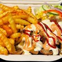 Kebabkjøttet var smakløst og føltes dårlig stekt. Boksen hadde stått på høykant. Pommes, kjøtt, salat og dressinger, alt var klemt og blandet sammen i en side i emballasjen og masse klin i posen.