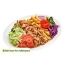 Kebab av kylling med salat, tomat, agurk og løk. Velg variant.