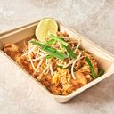 Rørte og stekte nudler med egg, tofu og bønnespirer. Serveres med sukker og limeskive. Velg mellom scampi eller kylling.