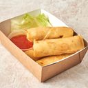 Fantastisk kylling tempura fritert med brødsmuler. Serveres med salat og vår egen sweet chilisaus.