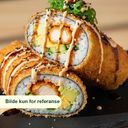 Enjoy the ultimate fusion of flavors with our sushi burritos. A whole sushi maki filled with homemade vinegar-seasoned sushi rice, deep-fried to crispy perfection with breadcrumbs and tempura powder. Choose from chicken/ shrimp/ salmon, paired with creamy avocado, crunchy cucumber, or melted cheddar cheese. Drizzled with tangy chilimayo and teriyaki sauce, and topped with a vibrant seaweed salad, tobiko fish eggs, and a sprinkle of sesame for the perfect bite.