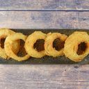 100g. Serveres med løkringer og pommes frites.