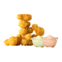 Crispy fries with original dressing, jalapeños, yellow onion, and melted cheddar dip. Medium: 0.8 kg CO2e, Large: 0.9 kg CO2e