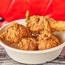 1 stk. thighs, 1 stk. legs og ris, salat og saus.