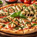 Mozzarella, Kylling, Pesto, Tomat, Pizzasaus Alle våre pizzaer kommer i en raus 30 cm-størrelse og er ferskbakte.