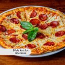 Tomatsaus, mozzarella, pepperoni salami, parmesan.