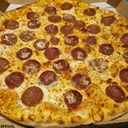 Pizza med tomatsaus, ost, pepperoni, skinke, kjøttdeig og løk. Velg størrelse.