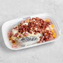 Klassisk bakt potet fylt med skinke, bacon, ost, mais, kryddersmør og husets dressing.